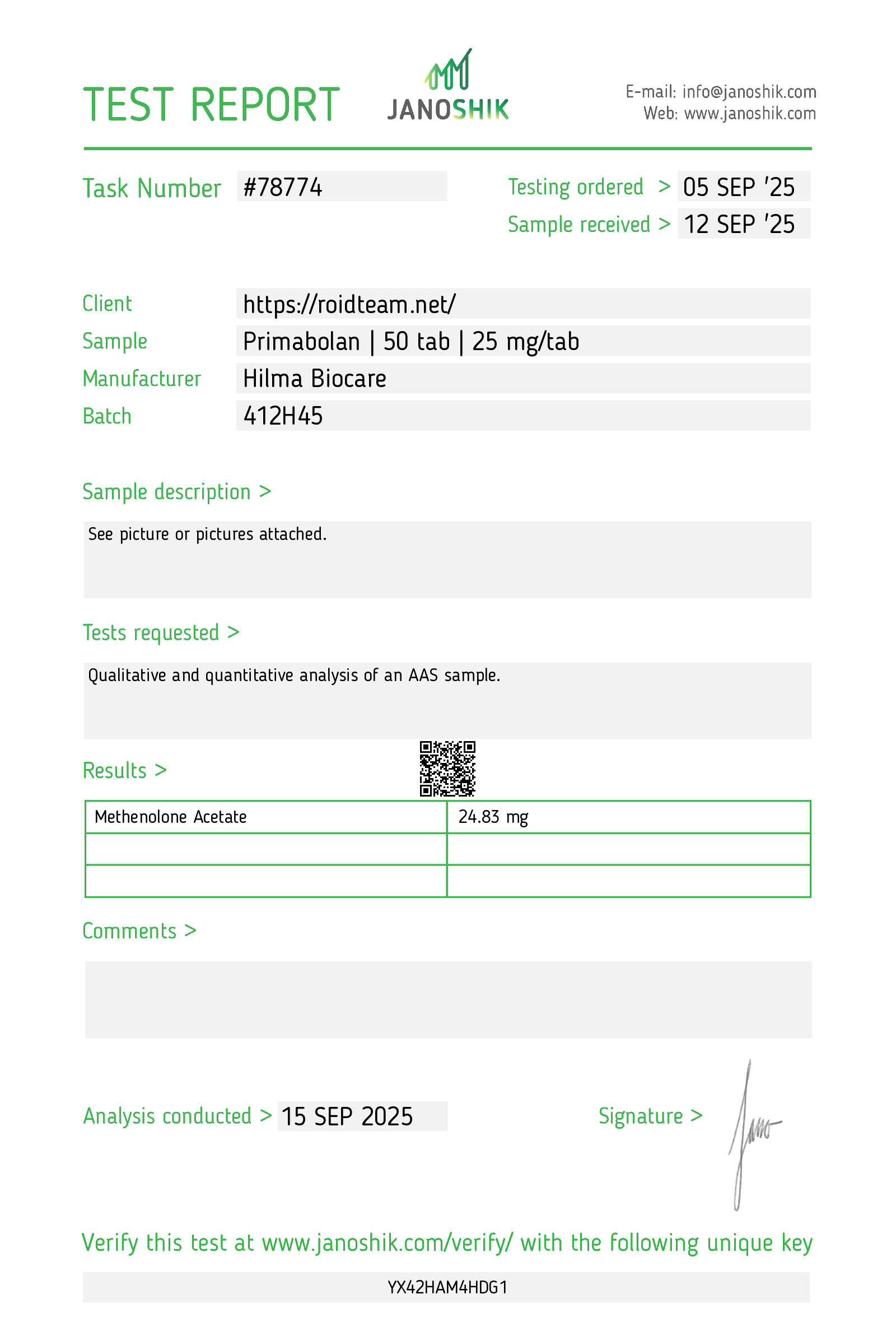 Primobolan Acetate, produced by Hilma Biocare, is a mild yet effective anabolic steroid that stands out in the fitness community for its ability to promote lean muscle mass and strength with minimal side effects. This compound is popular among both male and female athletes due to its low risk of virilization and effectiveness in supporting muscle growth while simultaneously aiding in fat loss. Primobolan Acetate is particularly well‑suited for those who wish to enhance their physique without experiencing excessive water retention or unwanted bulk.