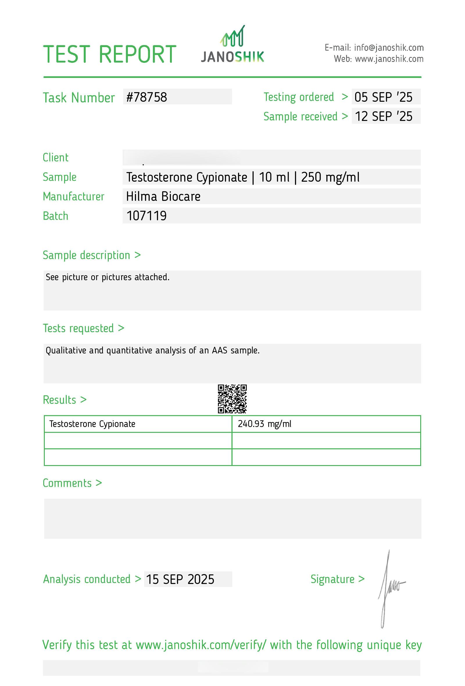 Active substance: Testosterone Cypionate